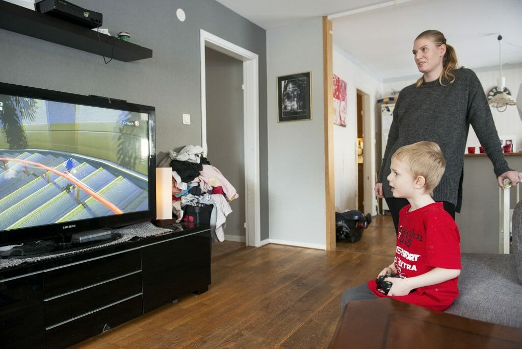 Efter operationen ska Thor Svensson slippa ha så ont, även om han får halsfluss igen. Nu kopplar han av med tevespel hemma i Kinnarp med mamma Eleonor Svensson. Foto: Kent Eng