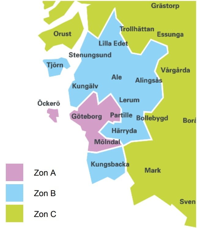 Zon A: Göteborg, Partille, Mölndal, Härryda