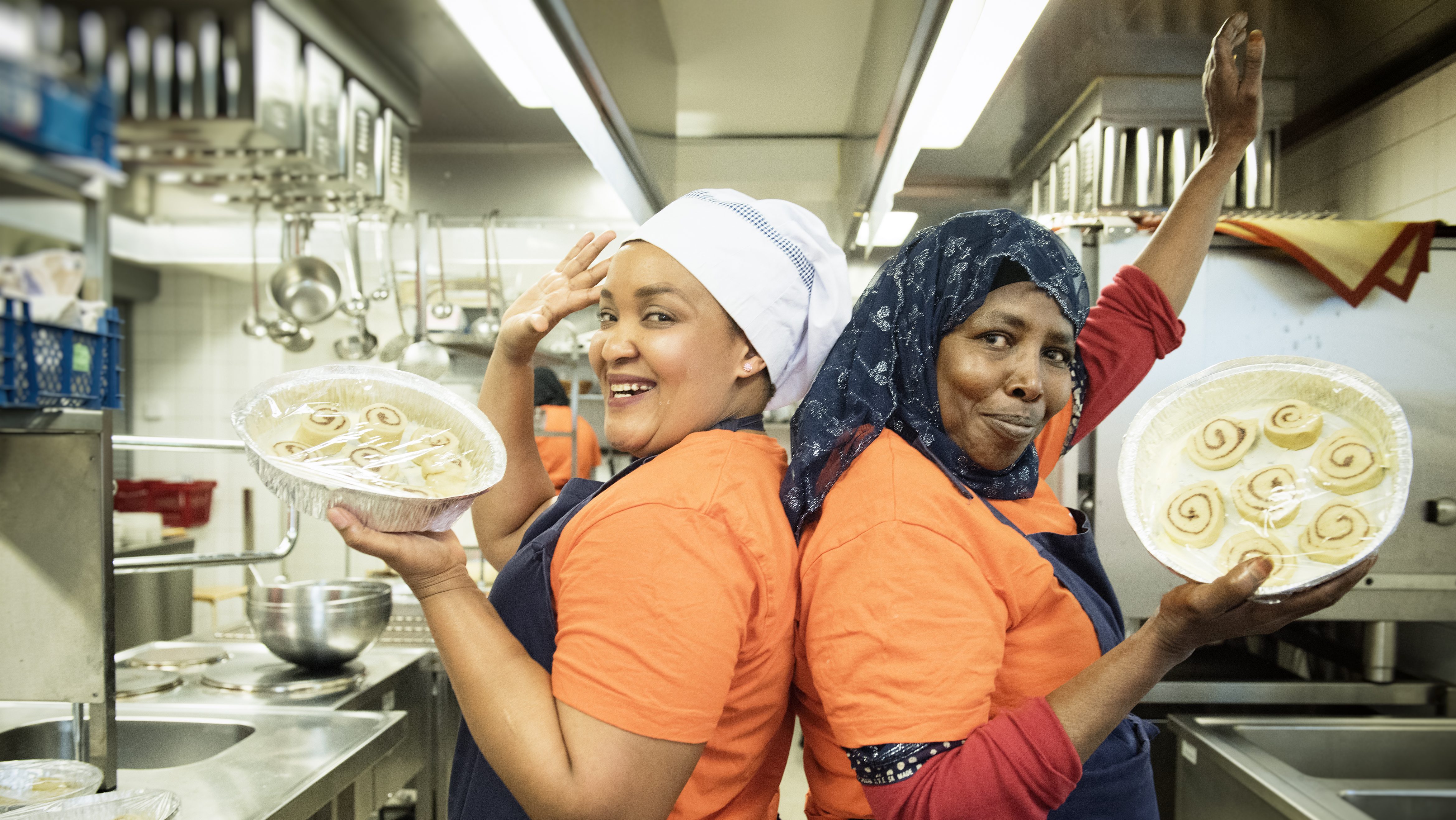 Naseriani Moleli och Saynab Ahmed Hagi drömmer om att få jobba i kök, något som kan bli verklighet med hjälp av utbildning inom EU-projektet FIER som VGR driver. Foto: Anna Rehnberg
