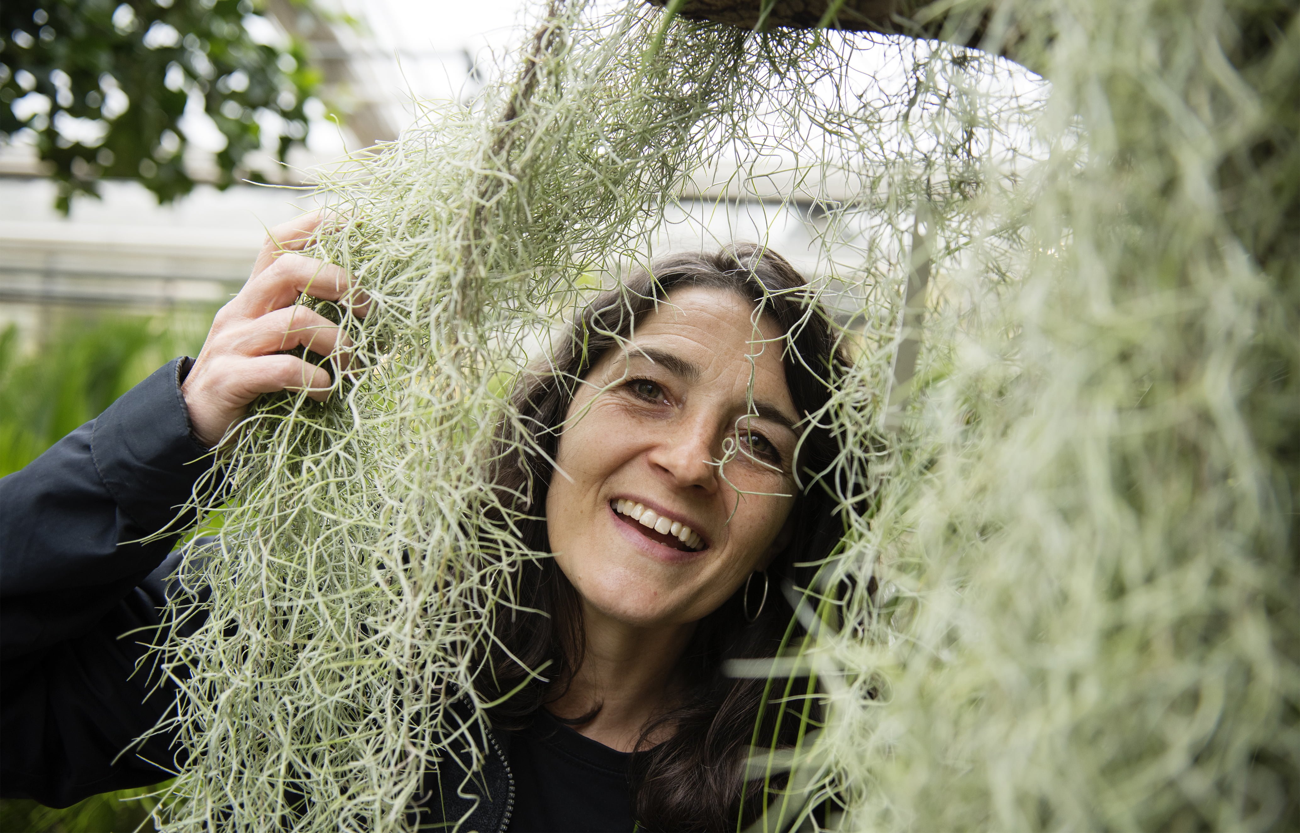 – Det här är en ananasväxt som kallas spansk mossa fast den inte alls är en mossa. Den heter Tillandsia, säger Kennert och visar på en växt som påminner om ett böljande grönvitt skägg. Det var Carl von Linnés lärjunge Samuel Tilland som namngav den. Det sägs att han tog sitt efternamn för att han blev så sjösjuk till havs.