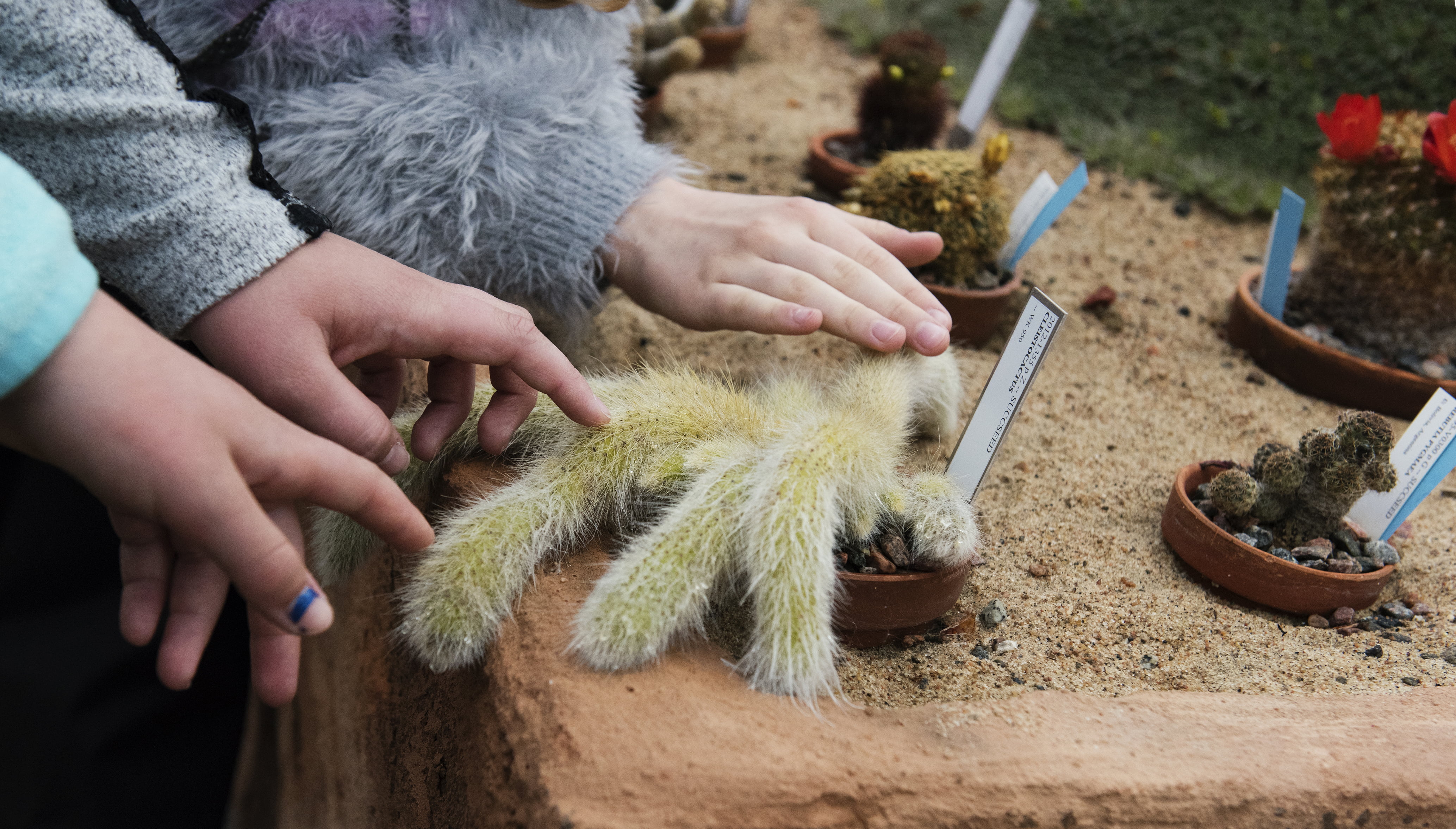 – Coolt, den ser ut som en luden spindel, säger Elsa Hellstedt och stryker försiktigt med fingret över en kaktus som ser ut som den ska krypa iväg.