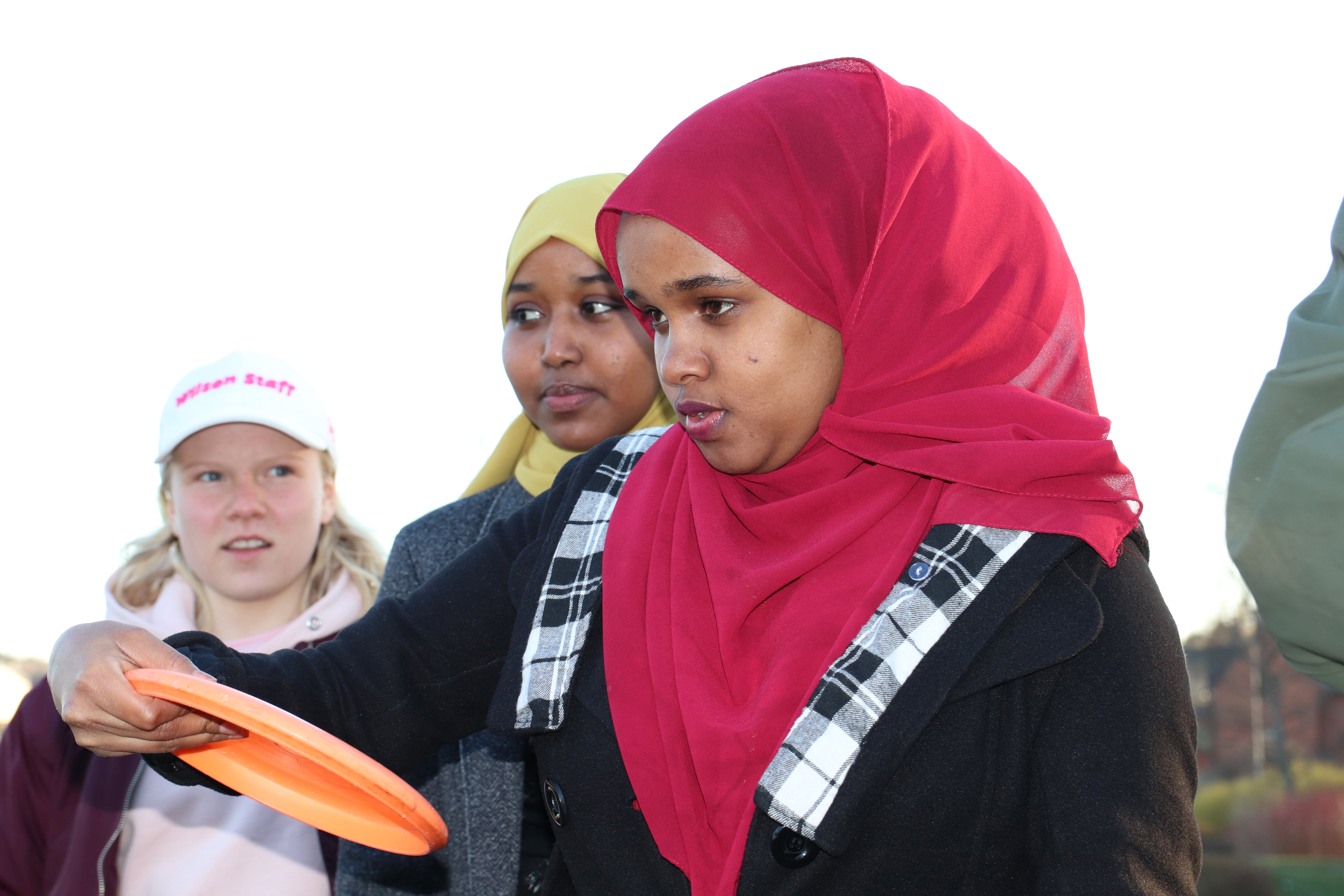 På Storegården finns inte minsta tecken på segregation eller gränser. Tjejerna i gruppen trivs gott tillsammans. Det märks inte minst när det är dags för lite frisbee-golf i kvällssolen. Christoph Sjöqvist som är fritidsledare instruerar, alla lyssnar och försöker träffa portarna. Här är det lek och skratt som gäller, huvudsaken är att man har kul. Mitt på gräsmattan står Elin Johansson och kikar under kepsen. Hon berättar att hon ska lära tjejerna i Integrera att fiska i sommar. Med buss upp till Hunnebostrand, till stugan där hon och familjen tillbringar sommarlovet.