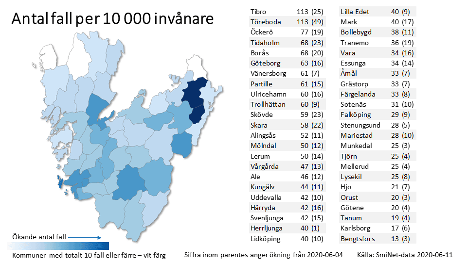 Smittspridningen i Västra Götaland ökar. Antalet fler bekräftade fall beror främst på att antalet provtagningar av allmänheten de senaste två veckorna ökat markant. Förra veckan gjordes 15 000 så kallade PCR-tester som visar om någon är smittad av covid-19. Den här veckan väntas uppemot 20 000 tester bli gjorda.