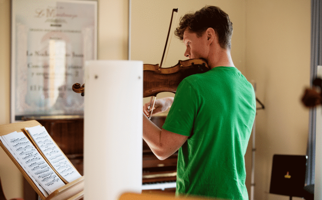 Terje har dessutom ett extra ansvar som en av två stämledare för andrafiolerna. Inför varje nytt verk behöver han studera noterna ordentligt och skriva in hur han och hans 15 kolleger i stämman ska föra stråkarna. När de ska gå uppåt och när de ska gå neråt, för att det ska se enhetligt ut när det blir dags för konsert. Ibland behöver han också samla sin stämma för att öva separat.