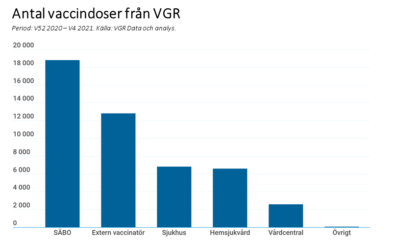 Vaccinationsviljan är god i Västra Götaland, många står på kö för att få vaccinera sig men för närvarande råder brist på vaccin. VGR skickar vidare allt vaccin som man får till de som utför vaccinationerna och fram till och med vecka 4 hade 47 650 doser skickats ut. Vaccineringen pågår fortfarande i fas 1 och fas 2 kommer påbörjas så fort det finns tillräckligt med vaccin.