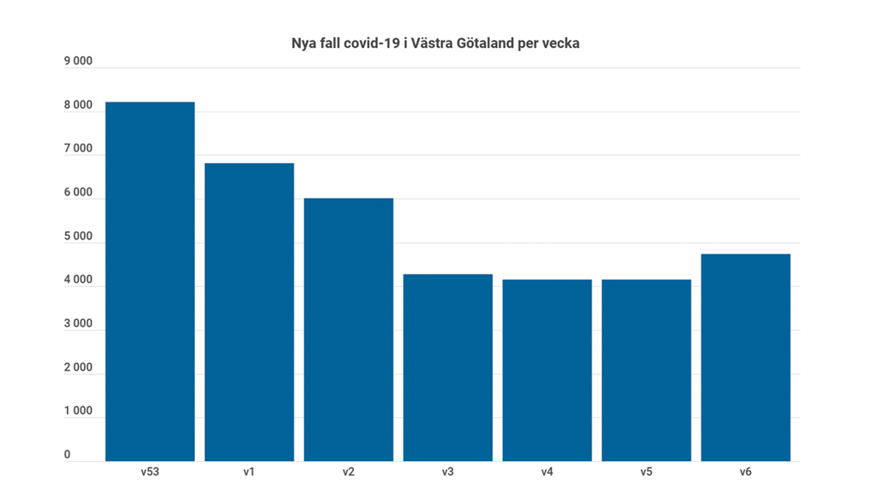 Efter flera veckors minskning har nu antalet nya fall av covid-19 börjat öka på nytt. Under vecka 6 konstaterades 4 737 fall av covid-19 i Västra Götaland, vilket är 14 procent fler än föregående vecka.