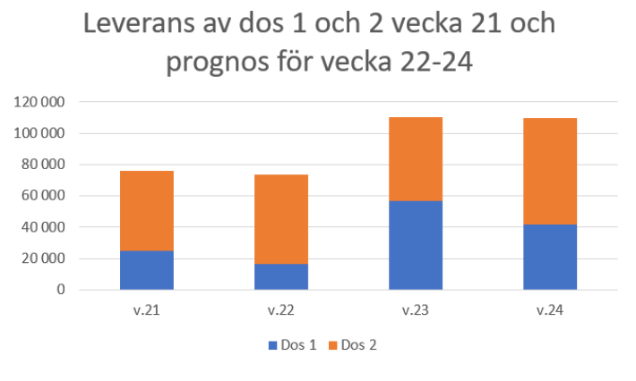 Drygt 72 200 doser levereras ut till vaccinatörer i Västra Götaland under vecka 21.