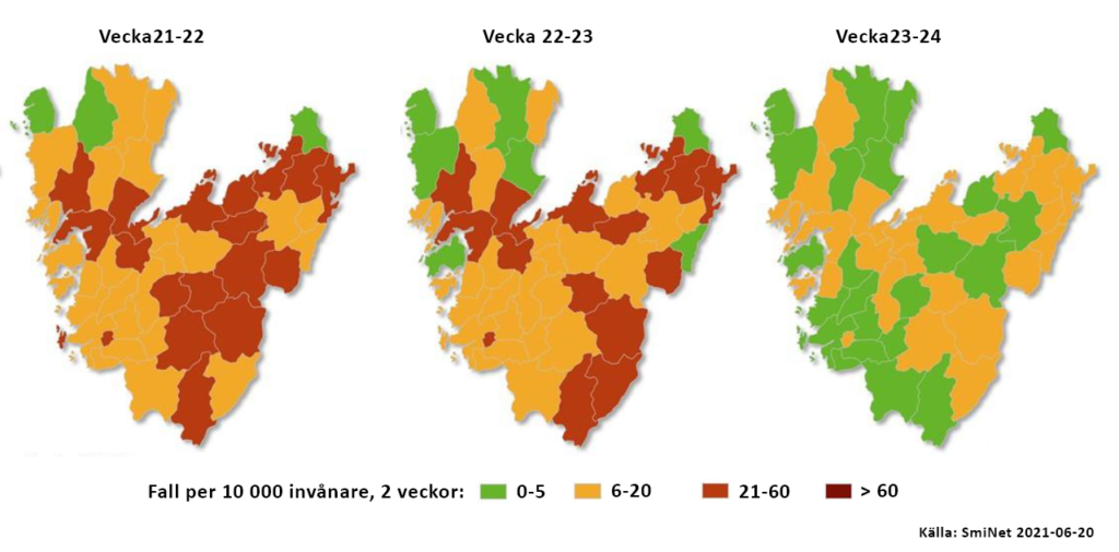 – Vi ser en minskning i samtliga åldersgrupper och i nästan alla kommuner. Högst incidens finns hos de unga under 30, människor som är ute och rör sig mycket, inte hunnit bli vaccinerade och behöver tänka extra mycket på att följa råden under midsommarhelgen, säger Thomas Wahlberg.