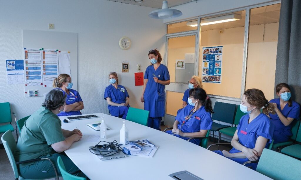 – Det låter som det är väldigt jobbigt där inne, så vi kan stötta upp dig om du behöver, säger en kollega till Sara innan hon lämnar ronden för att se till sin patient och hennes man.