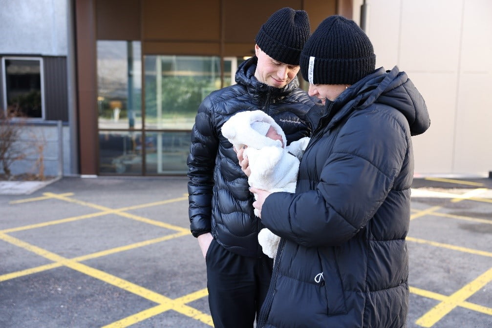 Utanför entrén till förlossningen har Erik Ottenvall kört fram bilen för att han, Sofia Lundberg och deras nyfödda bebis ska kunna åka hem som en familj.
