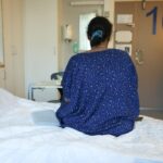 Inne i vårdrum 10 sitter en kvinna som vill vara anonym och väntar på sin man som ska ansluta till förlossningen. Först ska han hämta hem barnen från skolan och sedan ta bussen till sjukhuset.