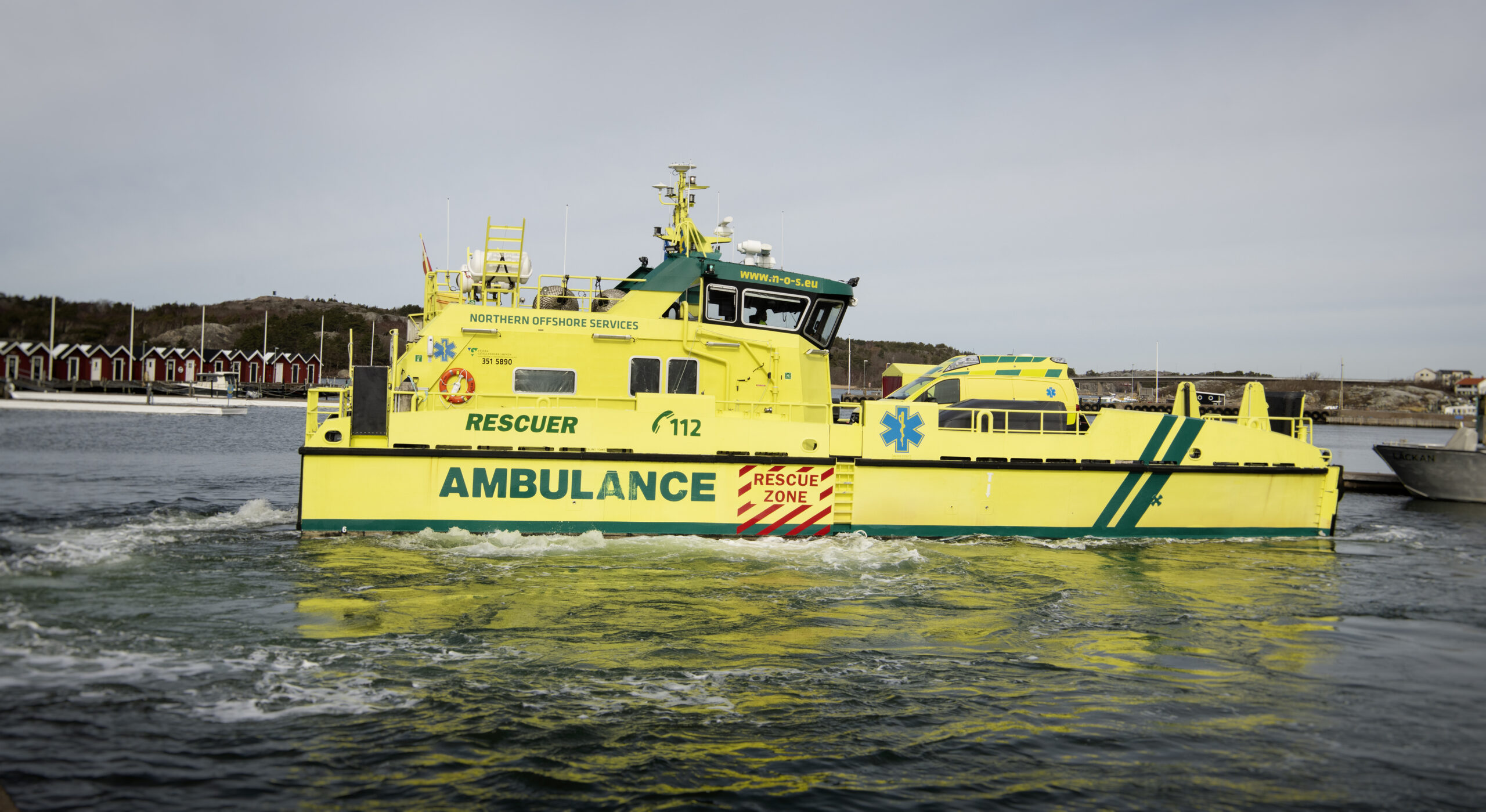 - Sahlgrenska Universitetssjukhuset upphandlar tjänsten med ambulansbåt, ambulans ombord, ambulanssjuksköterskor och besättning av rederiet Northern Offshore Services. Totalt är tio personer anställda, fyra ombordanställda/sjöfolk och sex ambulanssjuksköterskor.