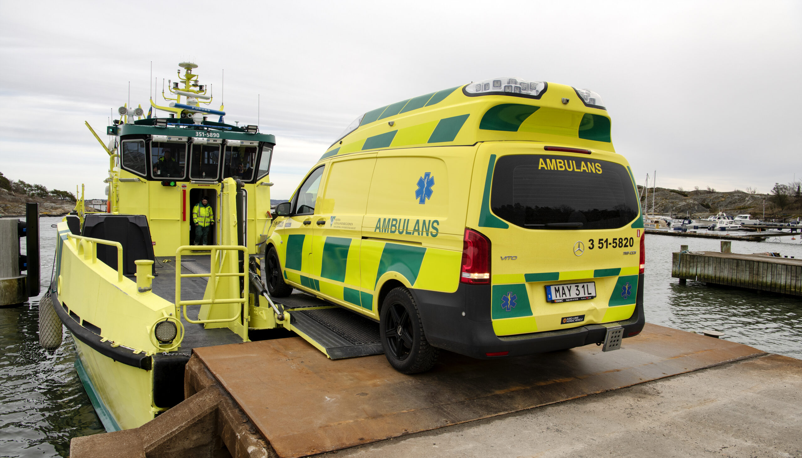 I Göteborgs skärgård finns Sveriges enda snabbgående ambulansbåt med ambulans ombord. Det innebär att patienter körs direkt till sjukhus utan tidskrävande omlastningar mellan fordon.