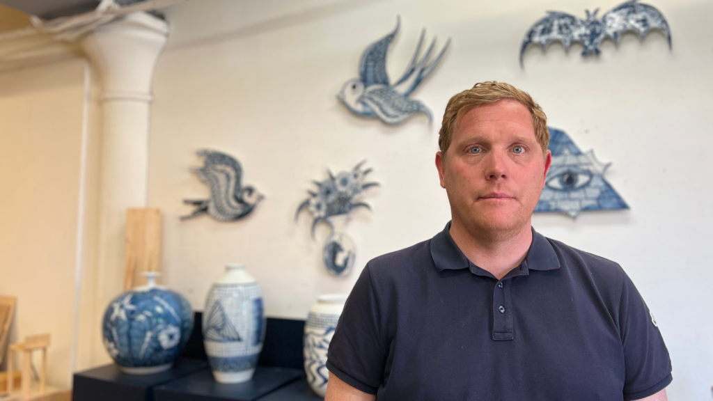 Men under en stipendievistelse i Kina fick han upp ögonen för porslinsmåleri, och fastnade. I dag gör han vaser, fat och annan porslinskonst.