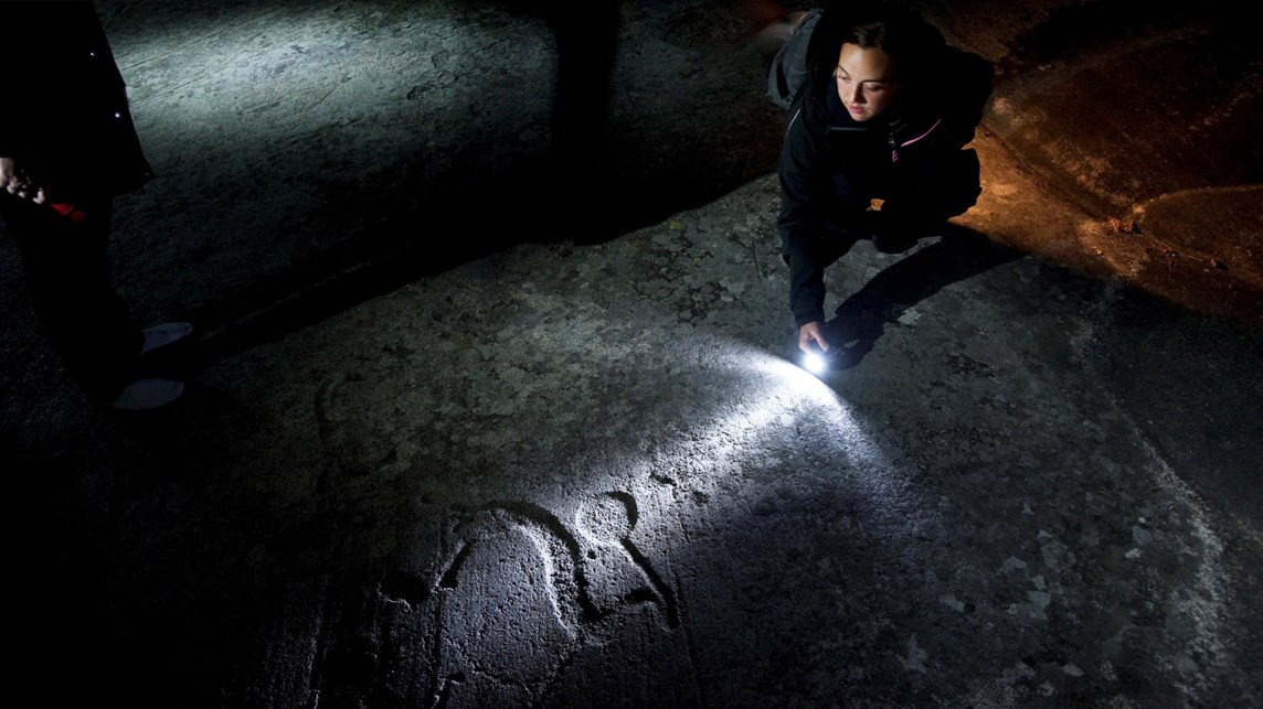 I mörkret går det att se hällristningar som inte syns på dagen, när ljuset kommer uppifrån.