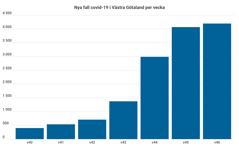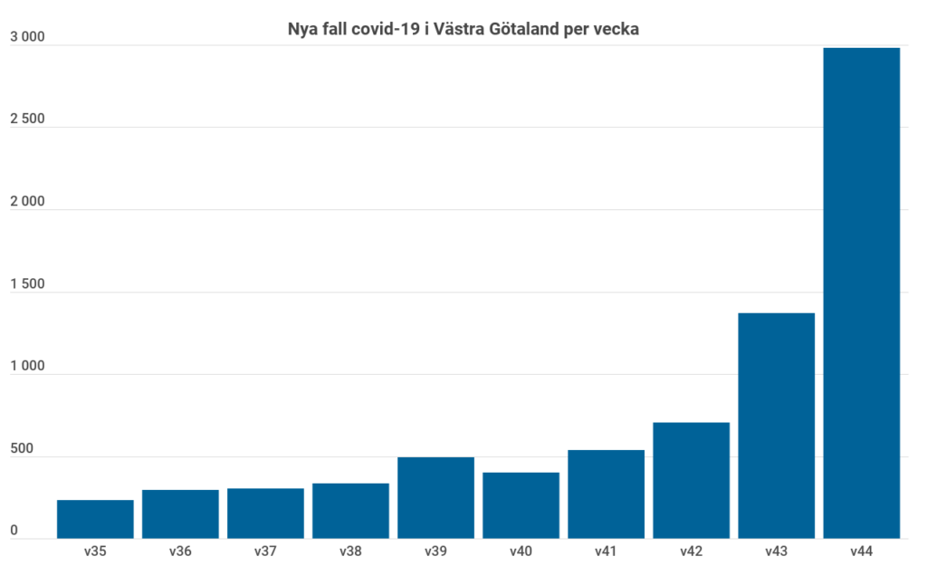 Smittspridningen och behovet av sjukhusvård ökar stort i Västra Götaland. Under vecka 44 upptäcktes 2984 nya fall, vilket är mer än en fördubbling jämfört med…